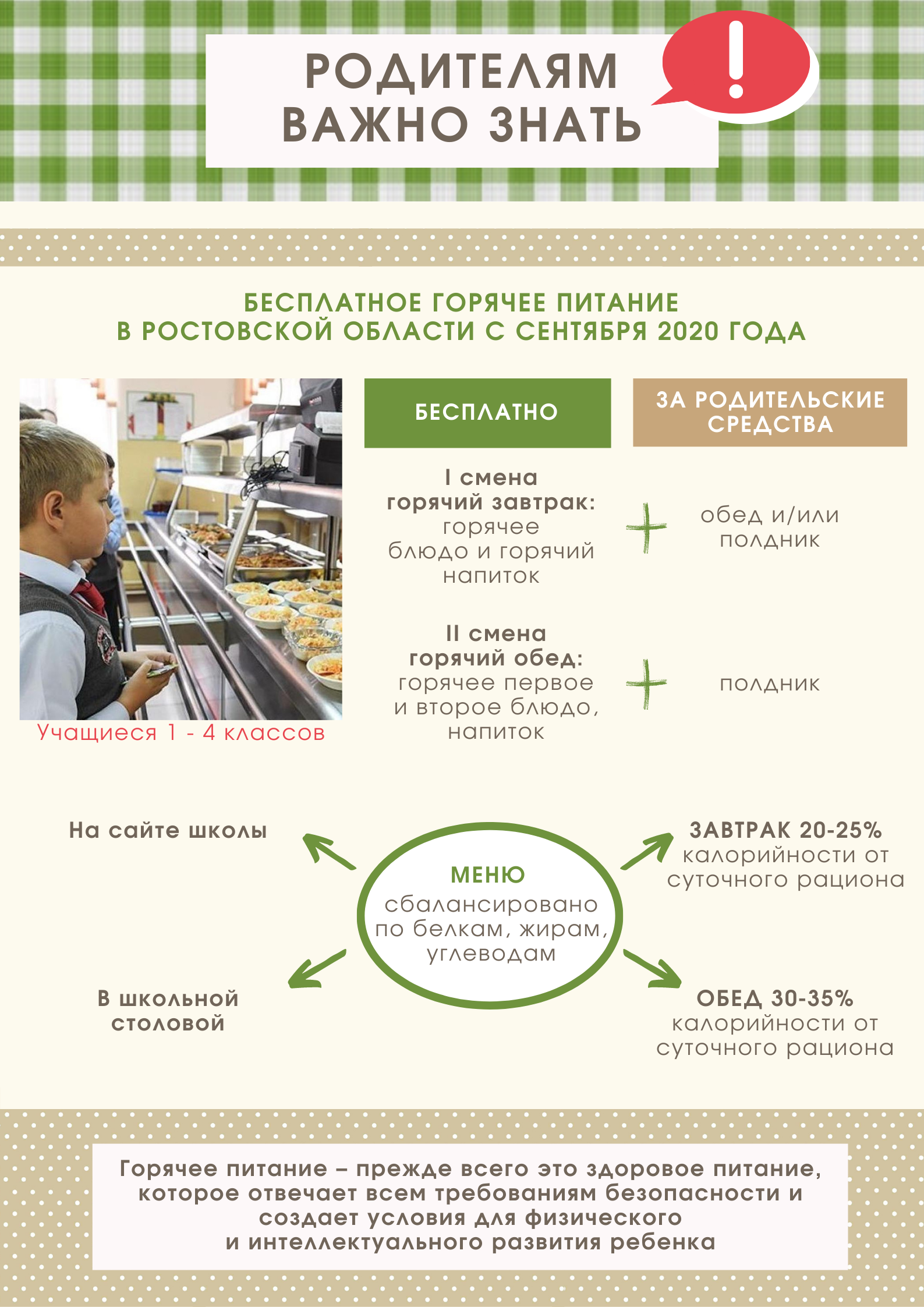 Членами комиссии «Родительского контроля» будет проведена проверка организации горячего питания обучающихся 1-4 классов.