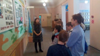 14.02.2018г. в рамках проведения месячника военно-патриотического воспитания и оборонно-массовой работы «Когда мы едины – мы непобедимы!», посвященного 75-годовщине освобождения города Гуково от немецко-фашистских захватчиков, обучающиеся 5б класса (классный руководитель Москалева Е.В.) и 6б класса (классный руководитель Дерябина Л.Е.), в сопровождении педагога-библиотекаря Тарабриной С.А. приняли участие в Уроке мужества «Доблесть. Мужество. Честь», который проходил в МБОУ ДО ЦЮД «Русич». Ребята ознакомились с достижениями воспитанников «Русича», узнали, как обращаться с парашютом, увидели военное оснащение: оружие различного типа, средства военной связи, средства химической защиты и вынесли для себя много нужной и полезной информации.